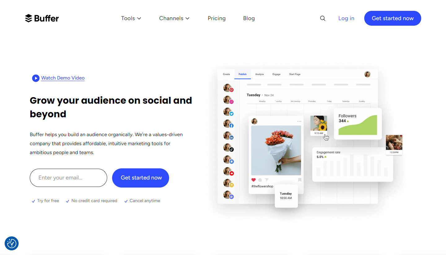 Buffer Price: (Very limited) Free plan available, with paid plans for one channel starting at $6 per channel per month.