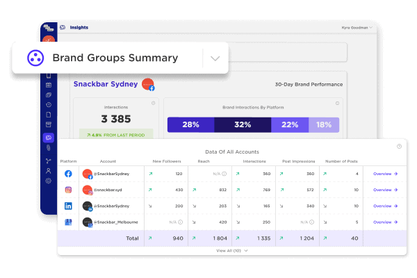 Problem: Siloed analytics make it hard to see the big picture Solution: Use Sked Social’s cross-platform analytics for a single source of truth.