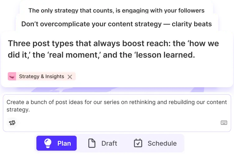 Use AI to deliver competitor insights, tracking up to 20 rivals on audience engagement, strategy, and posting trends— all visualised through side-by-side benchmarks you can easily share with stakeholders.
